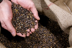 〝挽きぐるみ〟とは、ソバの実を丸ごと粉にしたそば粉のこと。選り分けた白いそば粉とは異なり、黒い色合いと濃厚なソバの香りが特徴。