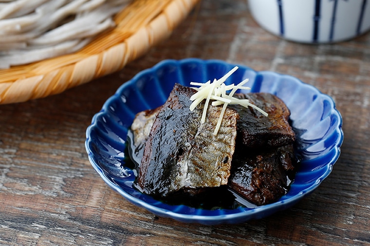 脂がのった「にしん」を素材の持ち味を生かすために保存料を使わずに砂糖と醤油、塩だけでじっくり煮込みました。ほど良い甘さは、お蕎麦との相性も抜群。
