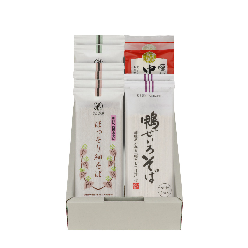 つめあわせ詳細 ・山形のさがえそば×2 ・ほっそり細そば×2 ・薫そば×2 ・本造りうどん×2 ・あったかそうめん×2 ・全粒粉うどん×2
