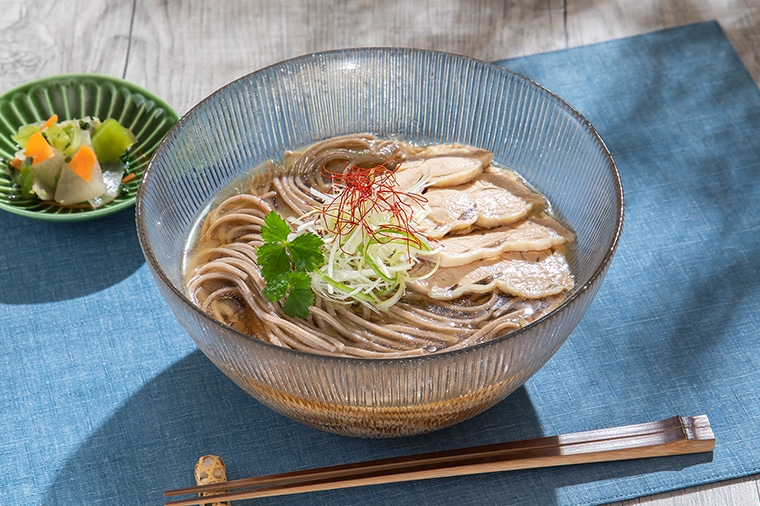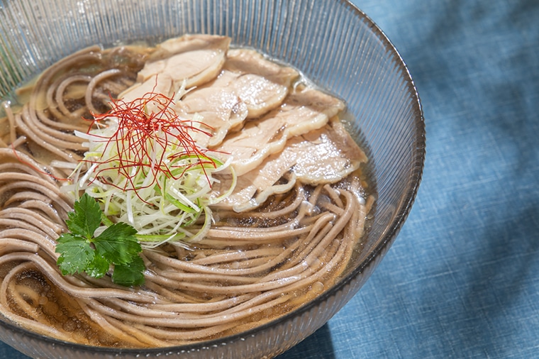 山形の「冷たい肉そば」とは、冷たい鶏だしスープで食べるかけ蕎麦のこと。