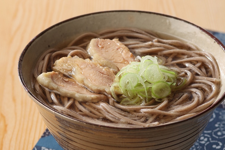 人気の秘密は親鶏のうま味がギュッとつまったあっさり醤油味のスープ。コシの強い田舎蕎麦によく合い、最後まで飲み干せるおいしさです。